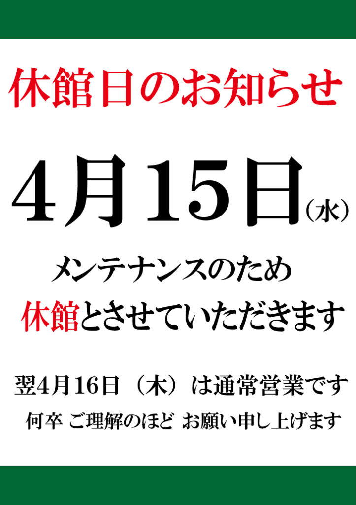 ※メンテナンス休館あり