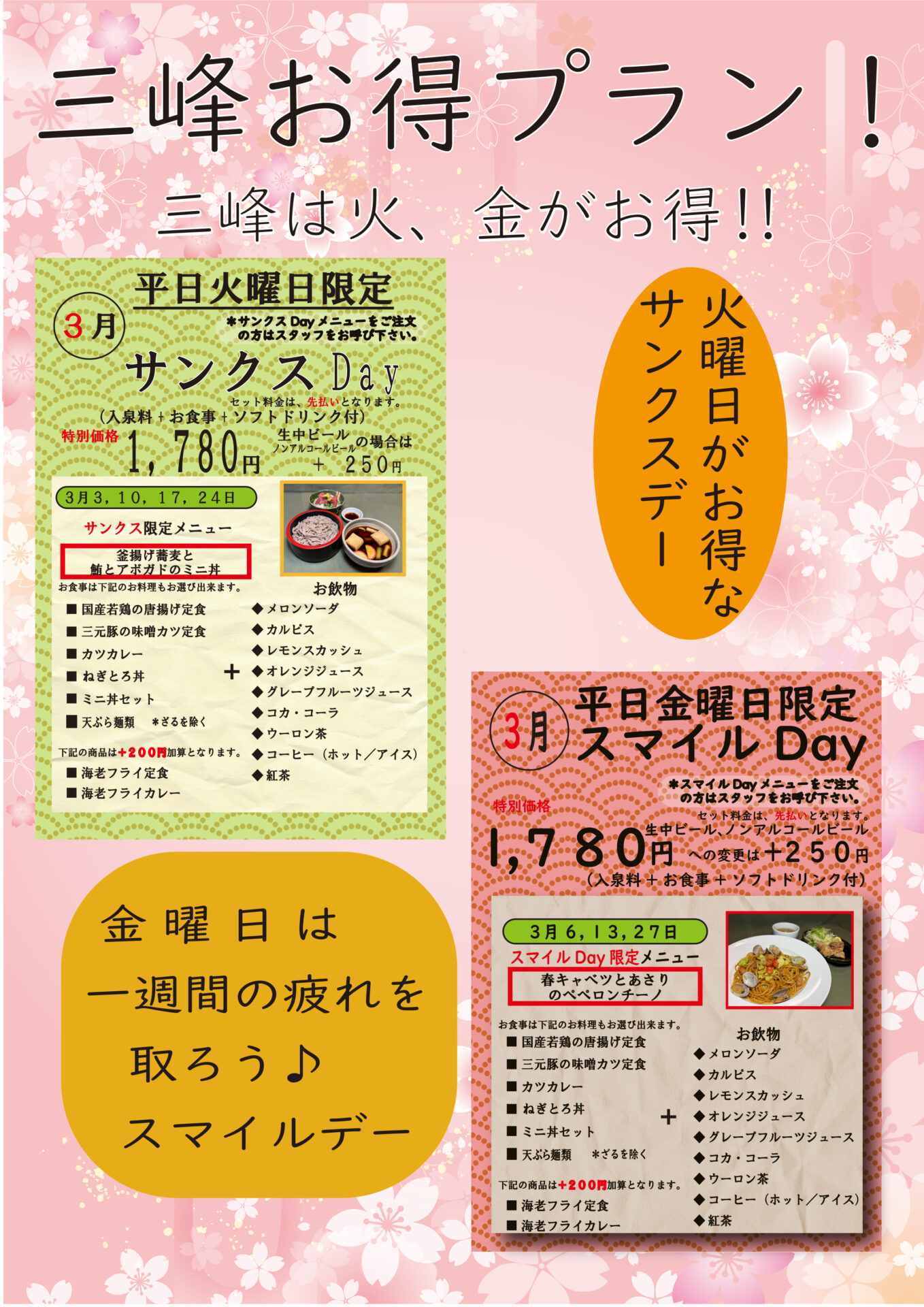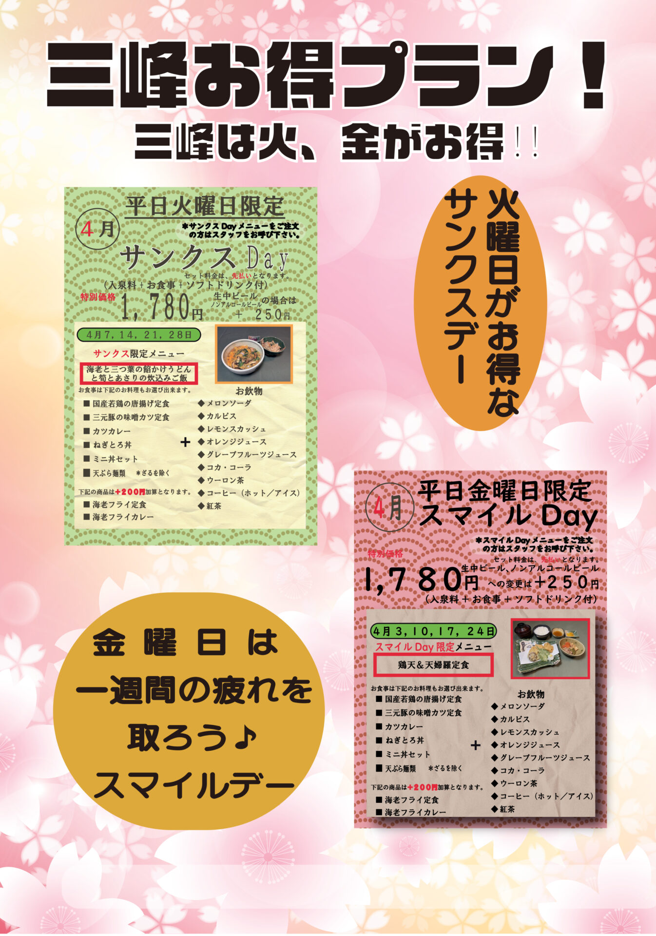 Bathing fee| 平日 | 土日祝 | |