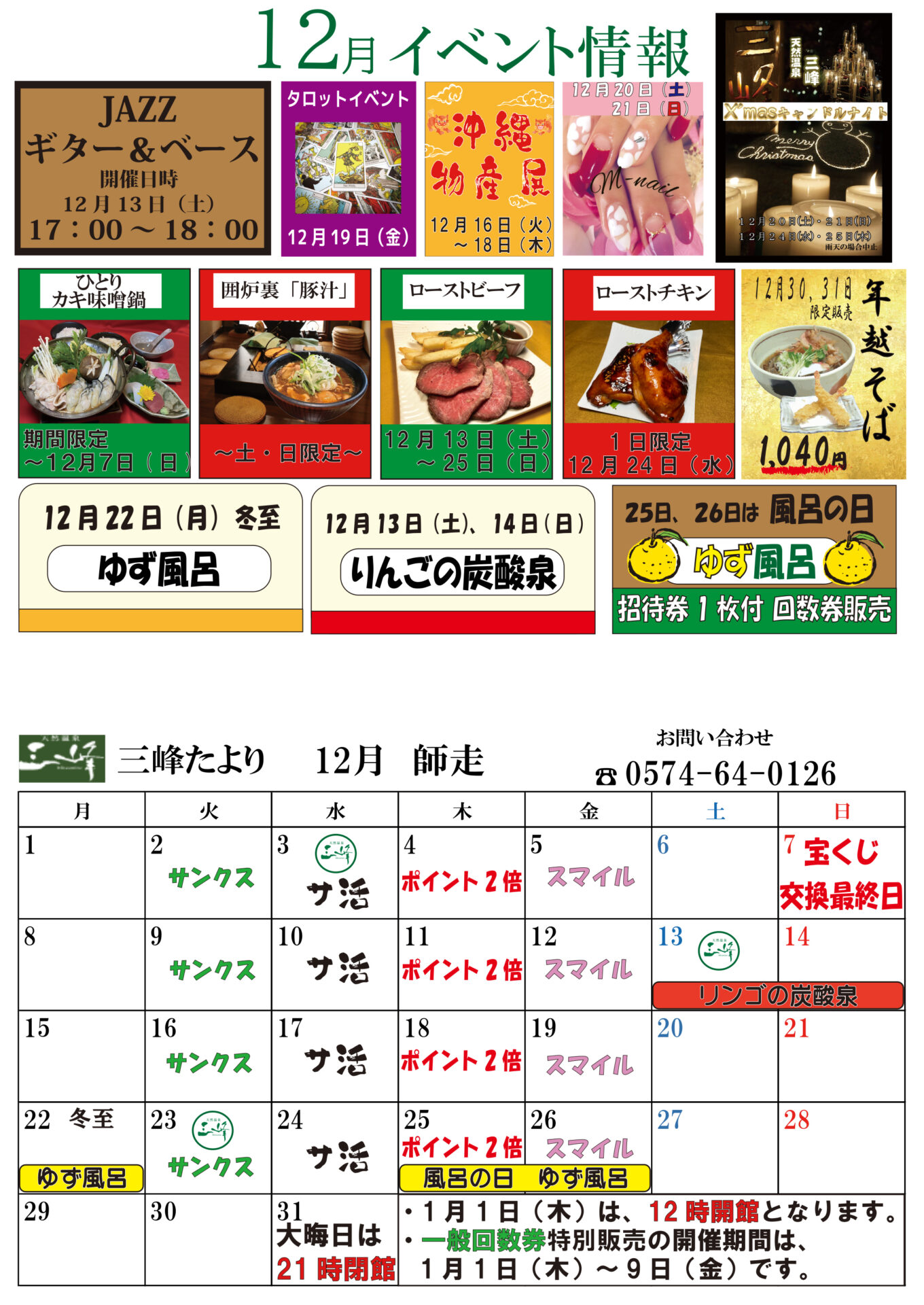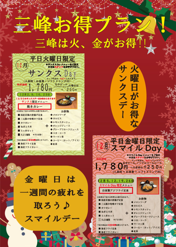 天然温泉三峰では通常イベント以外に、